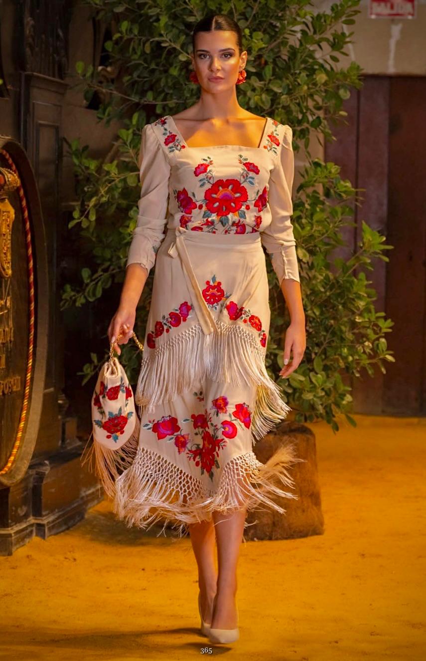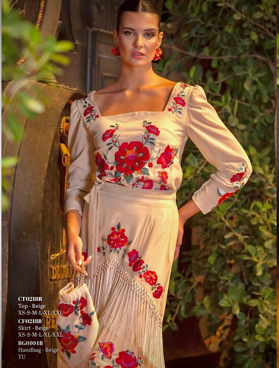ref0218 Conjunto de 2 piezas tejido de gasa crepada con camisa bordada y falda bordada con flecos a 2 niveles. Contiene lazada para ajustar a la cintura. Tejido, diseño y fabricación 100% Nacional. Por tallas: s m l xl xxl xxxl