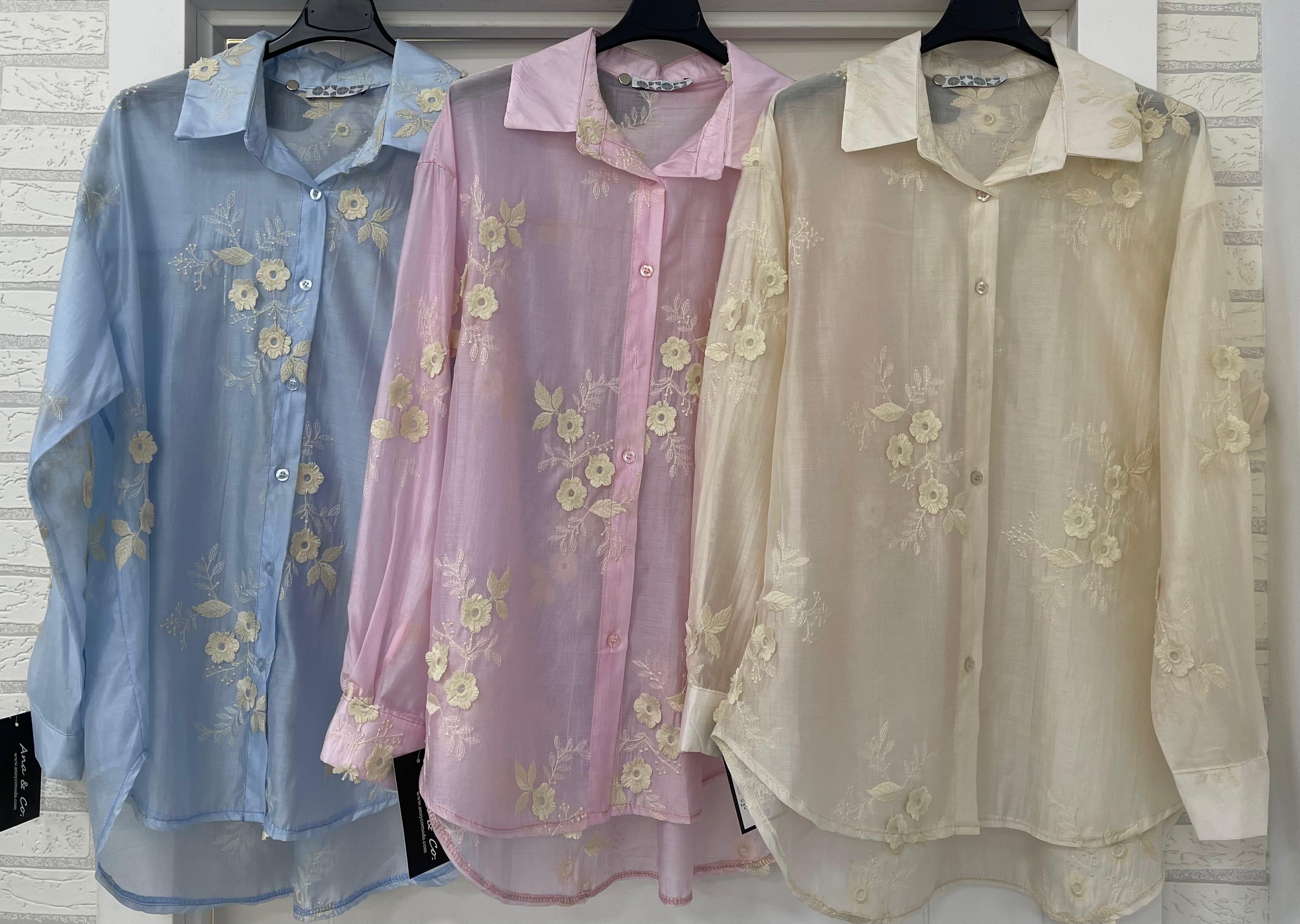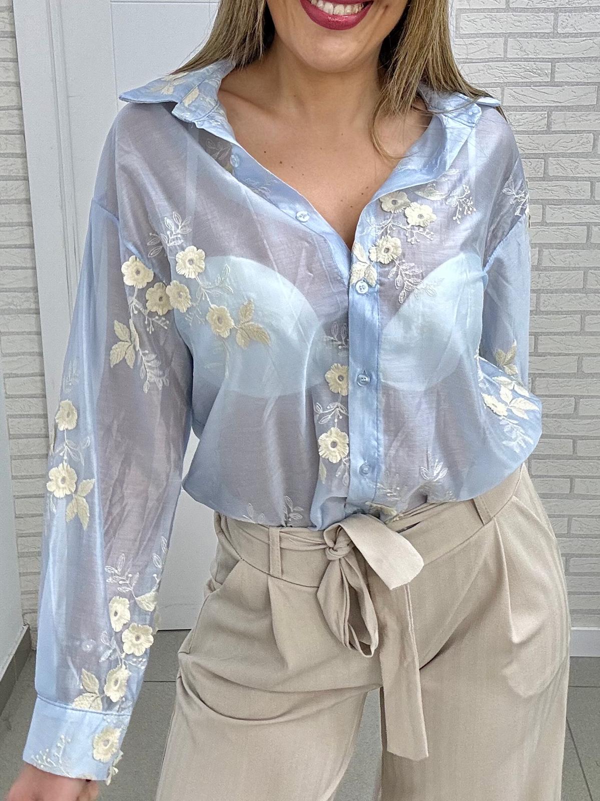 Camisa bordada con transparencia en tejido suave y fluido. Talla única (s a l)