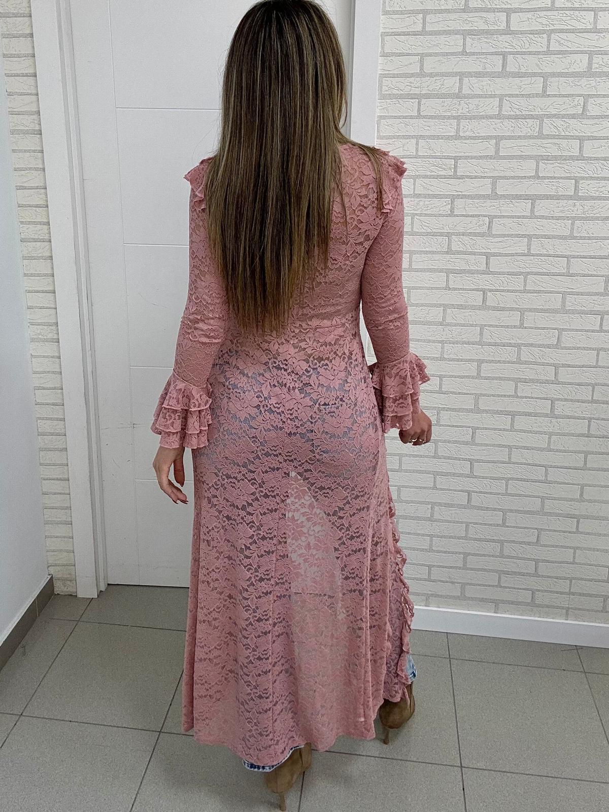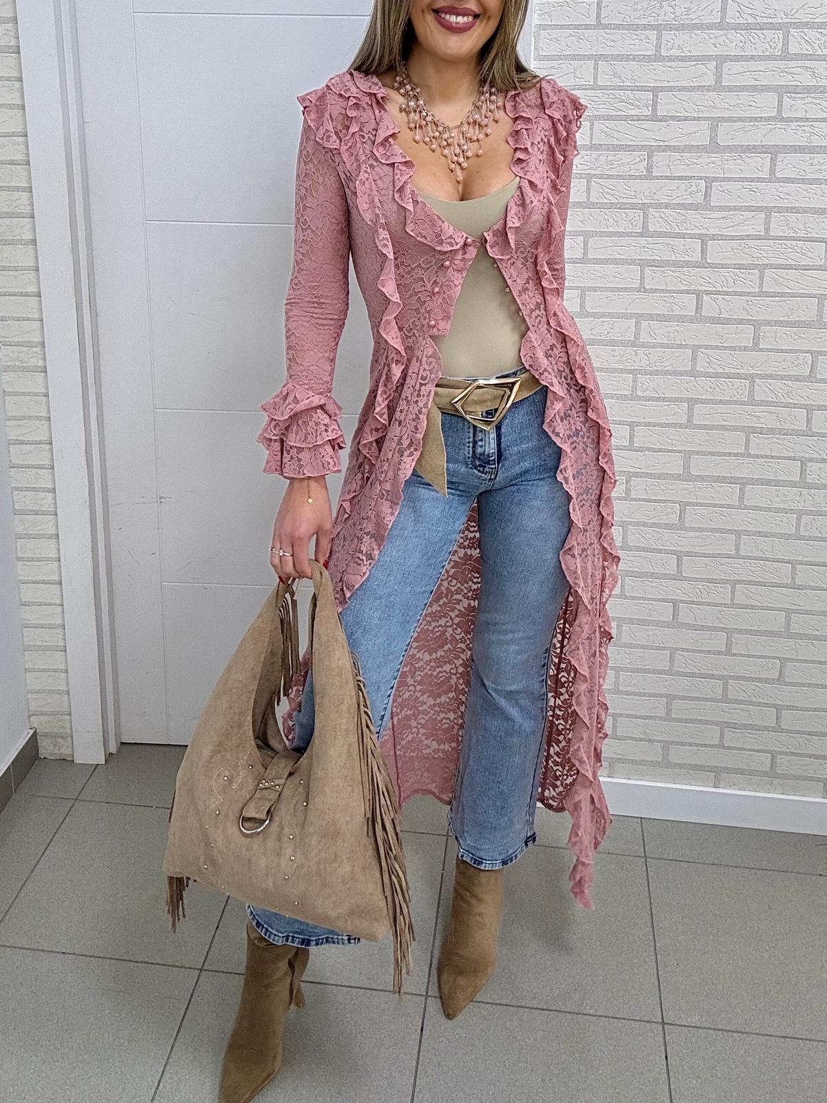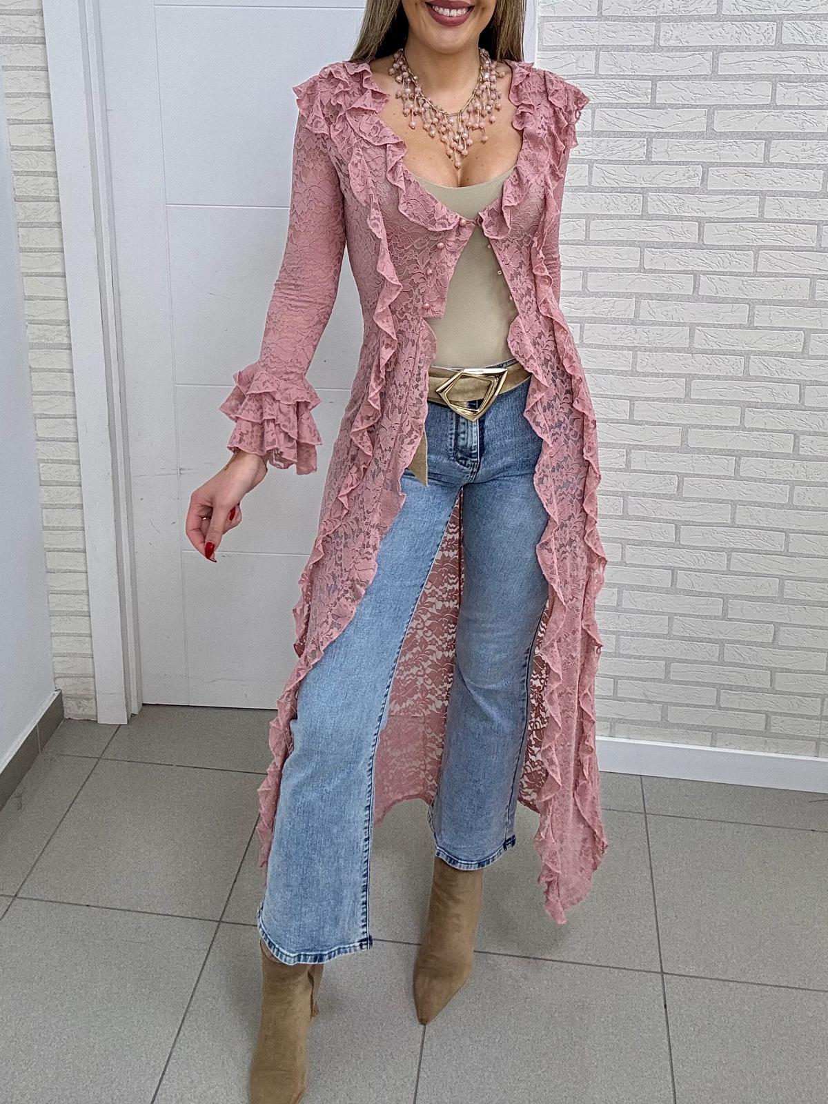 Chaqueta larga de blonda tipo caftán con abotonadura frontal hasta la cintura. Talla única (36 a 40)