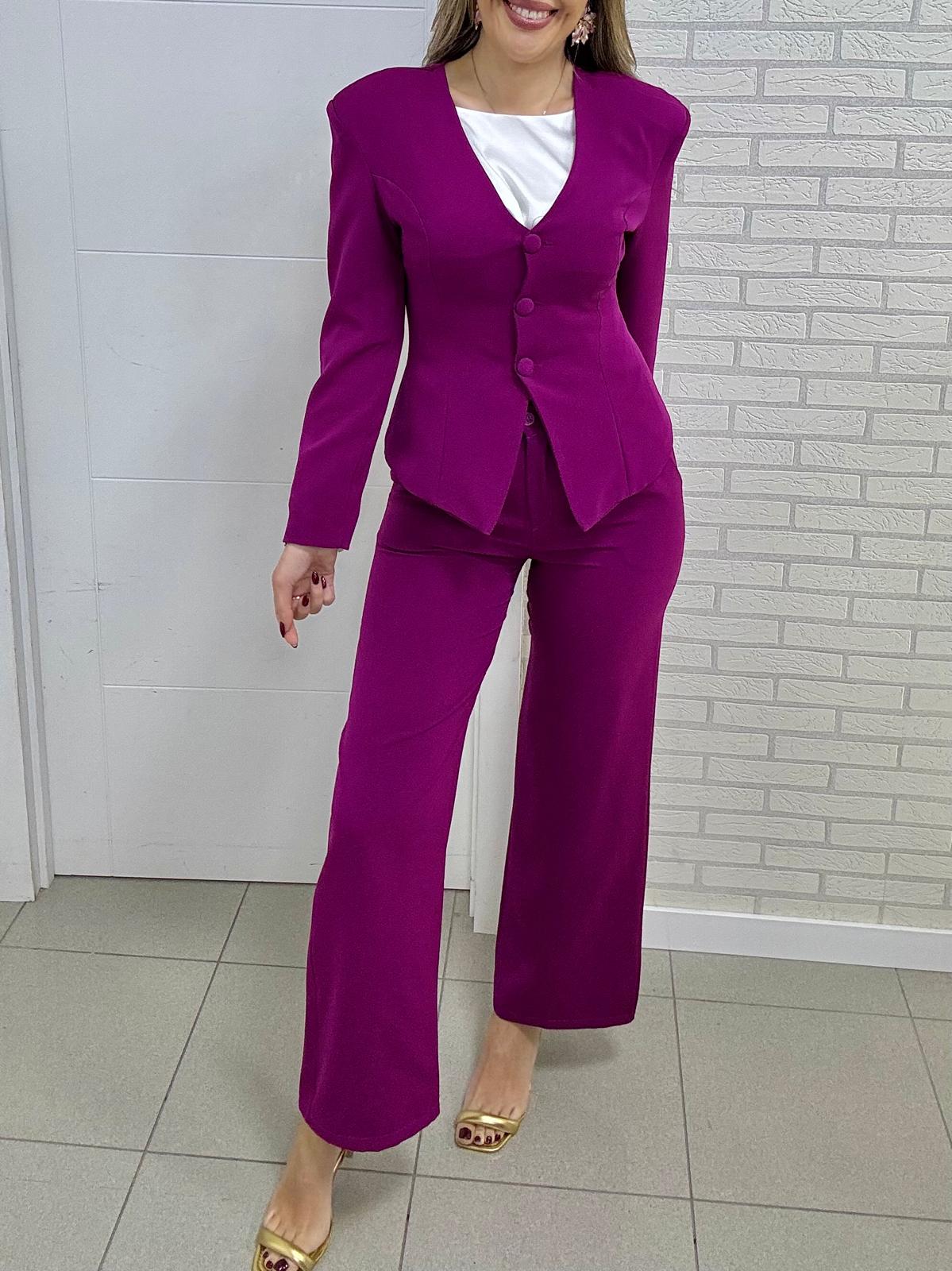 Conjunto de blazer manga larga (entallado) y pantalón incluye cinto (con elástico en la cintura).