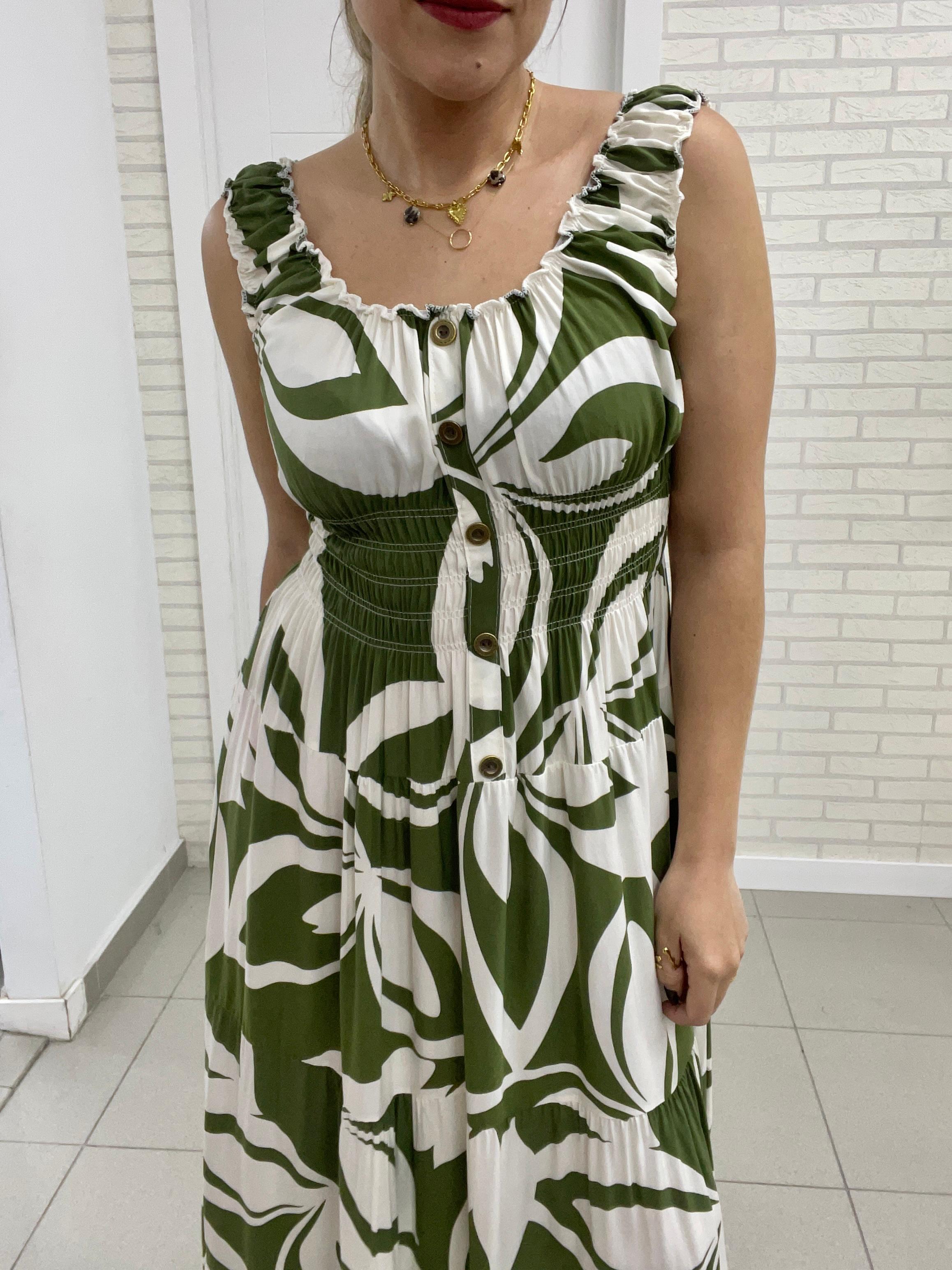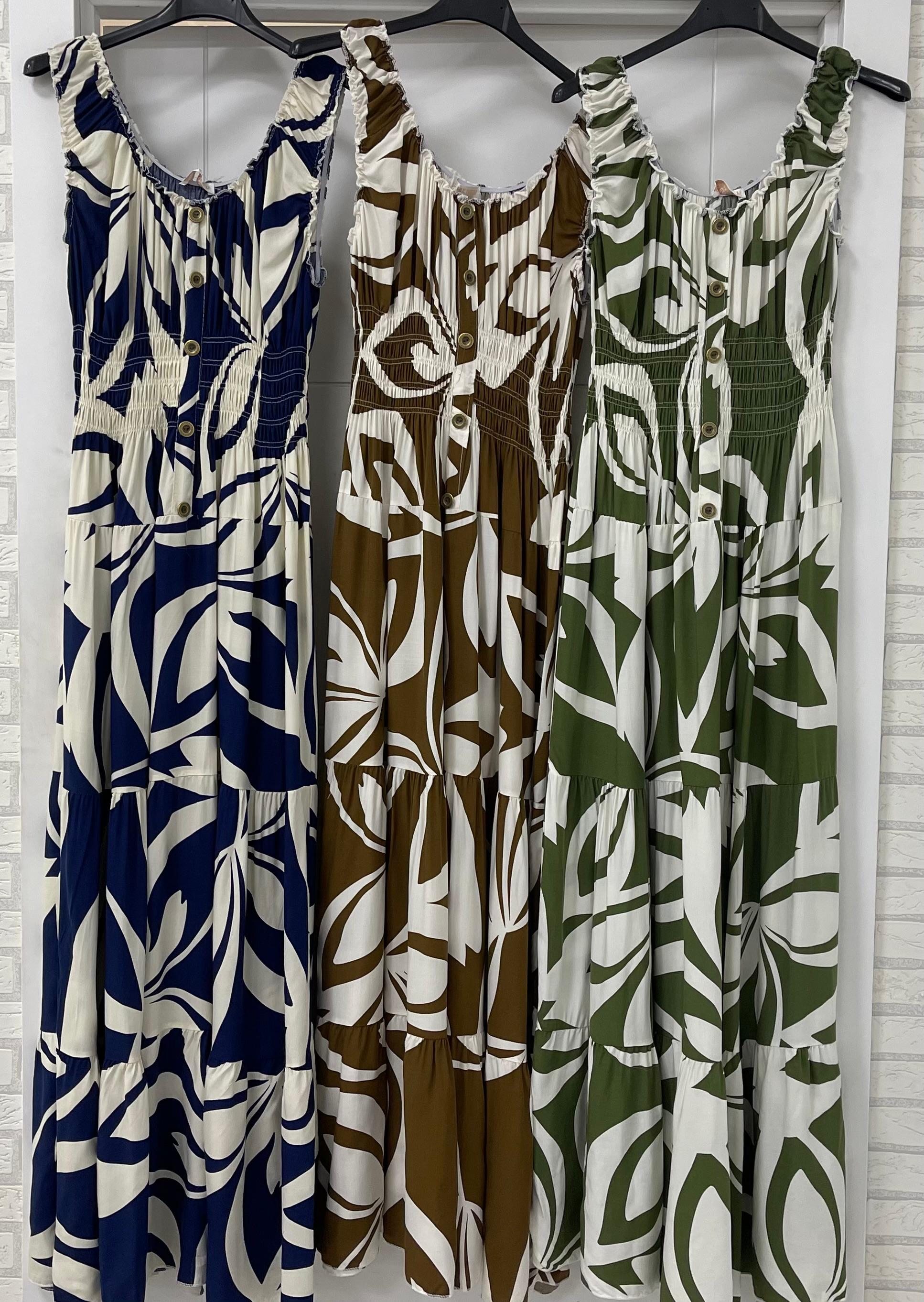 Hermosos vestido largo, de asilla gruesa, con elástico en cintura y estampado bohemio.