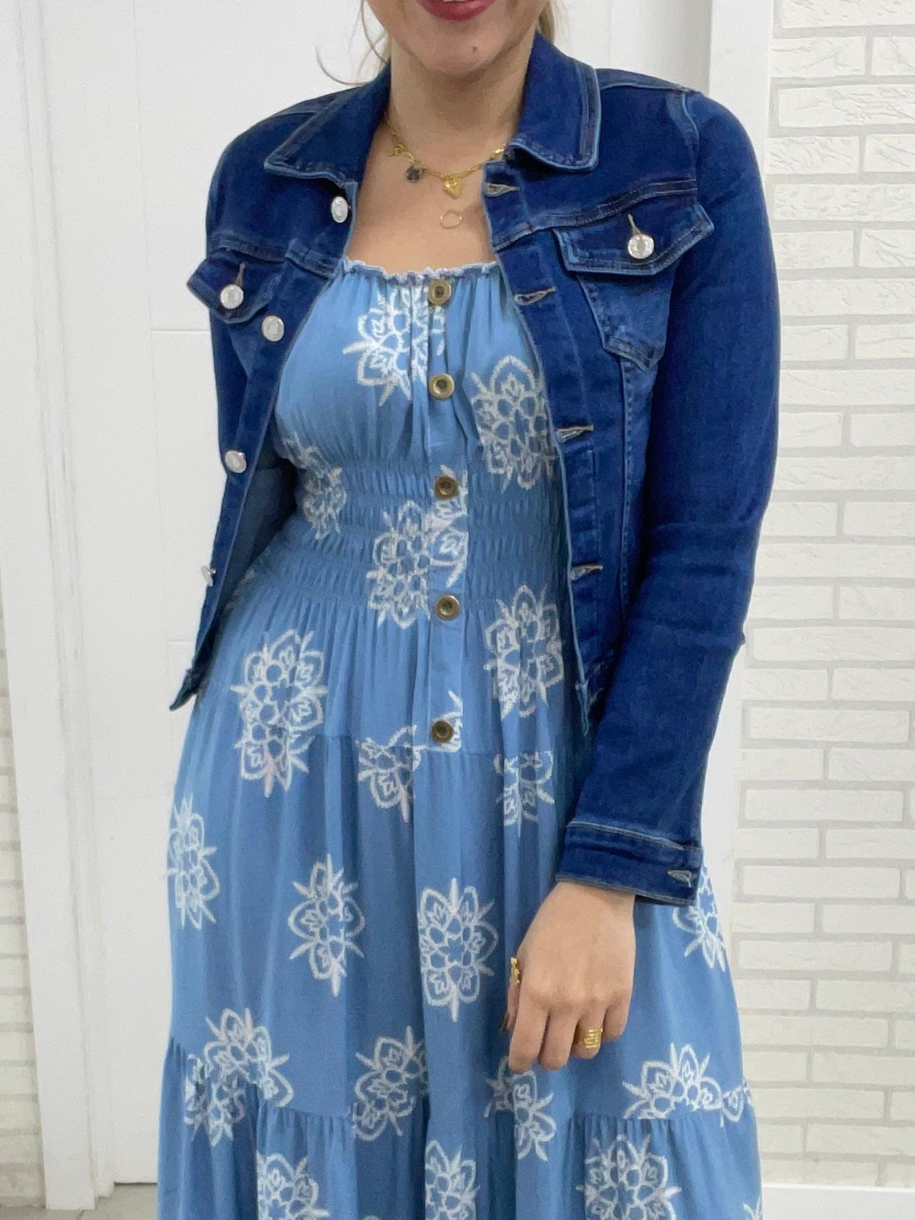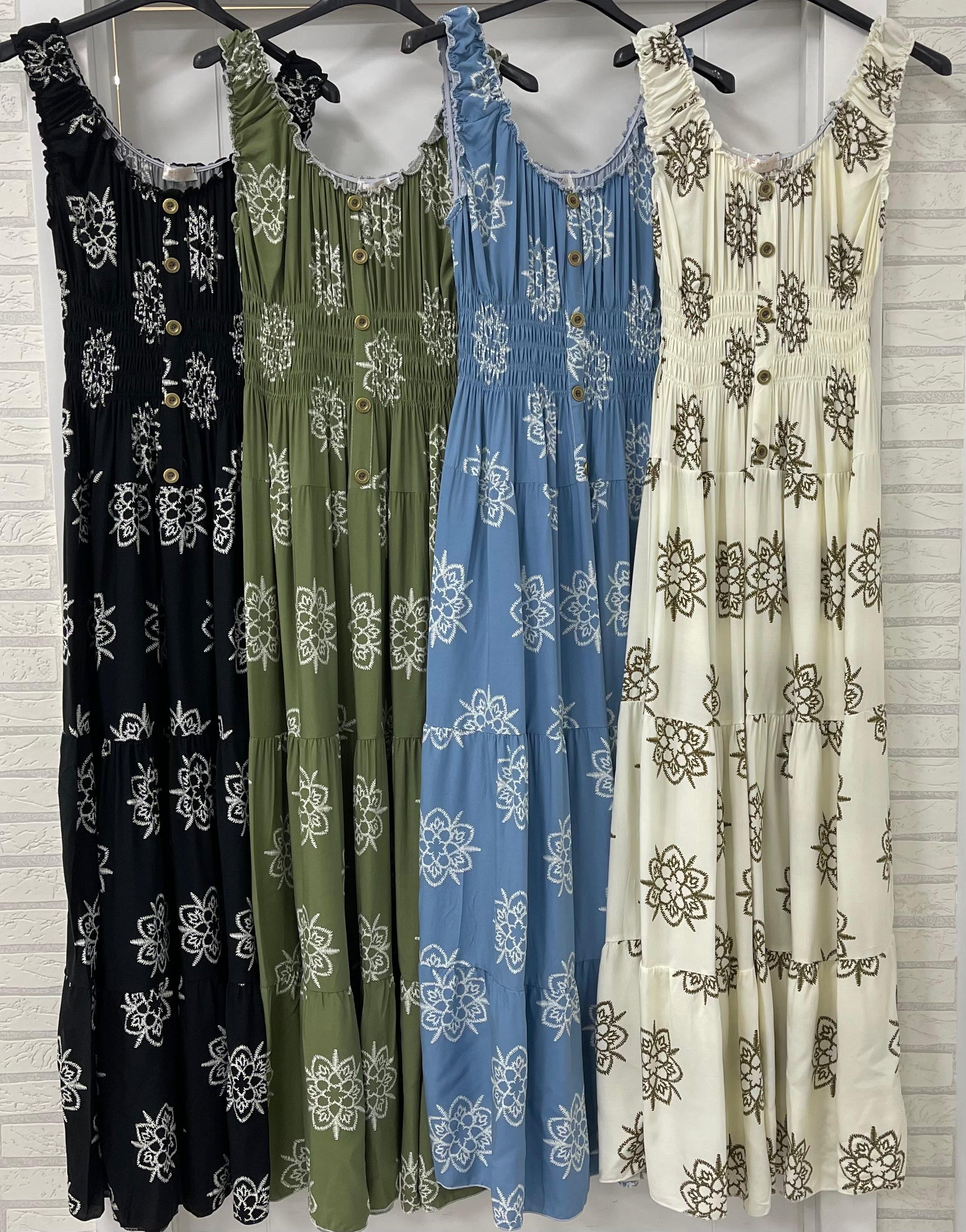 Hermosos vestido largo, de asilla gruesa, con elástico en cintura y estampado bohemio.