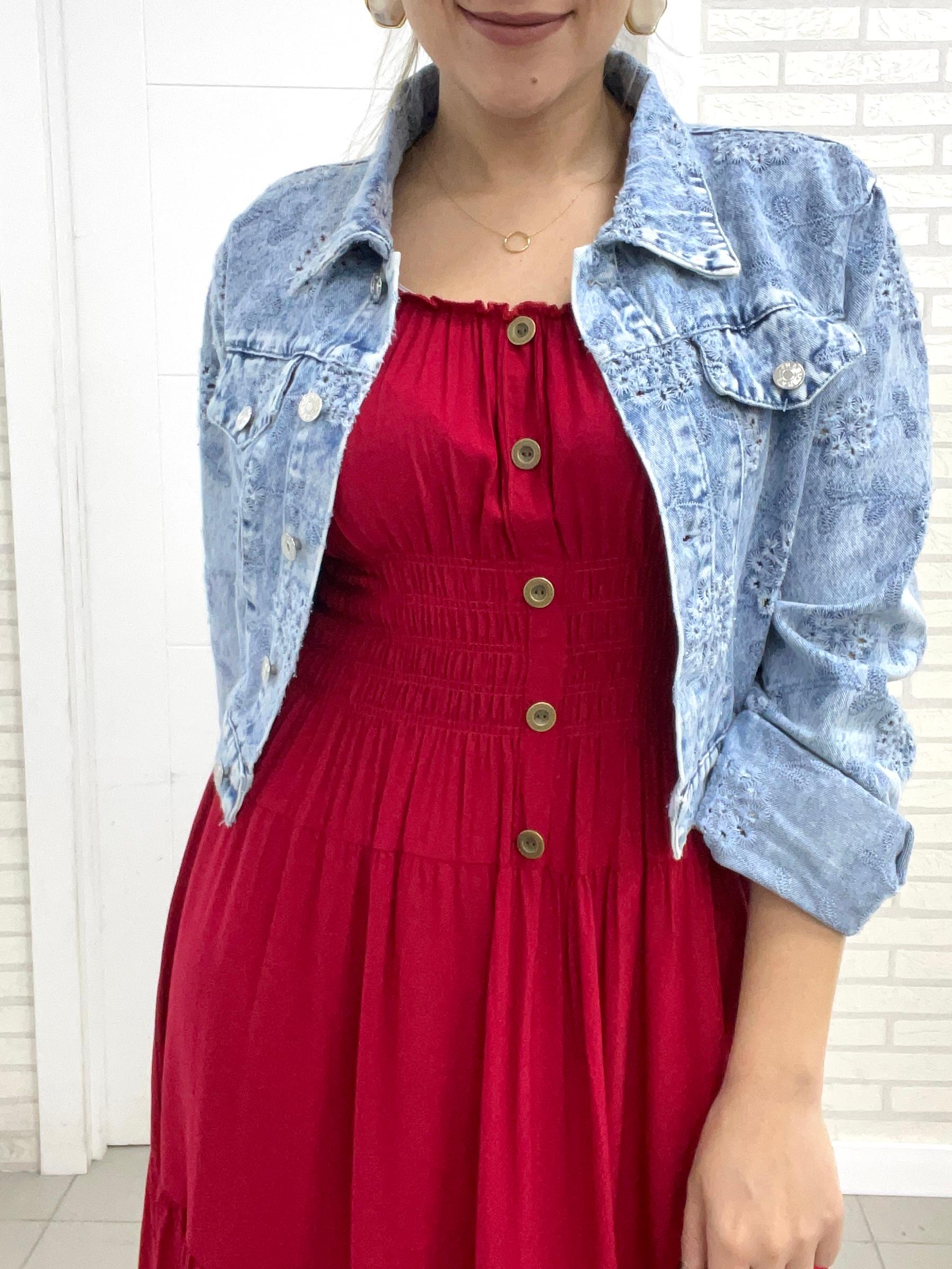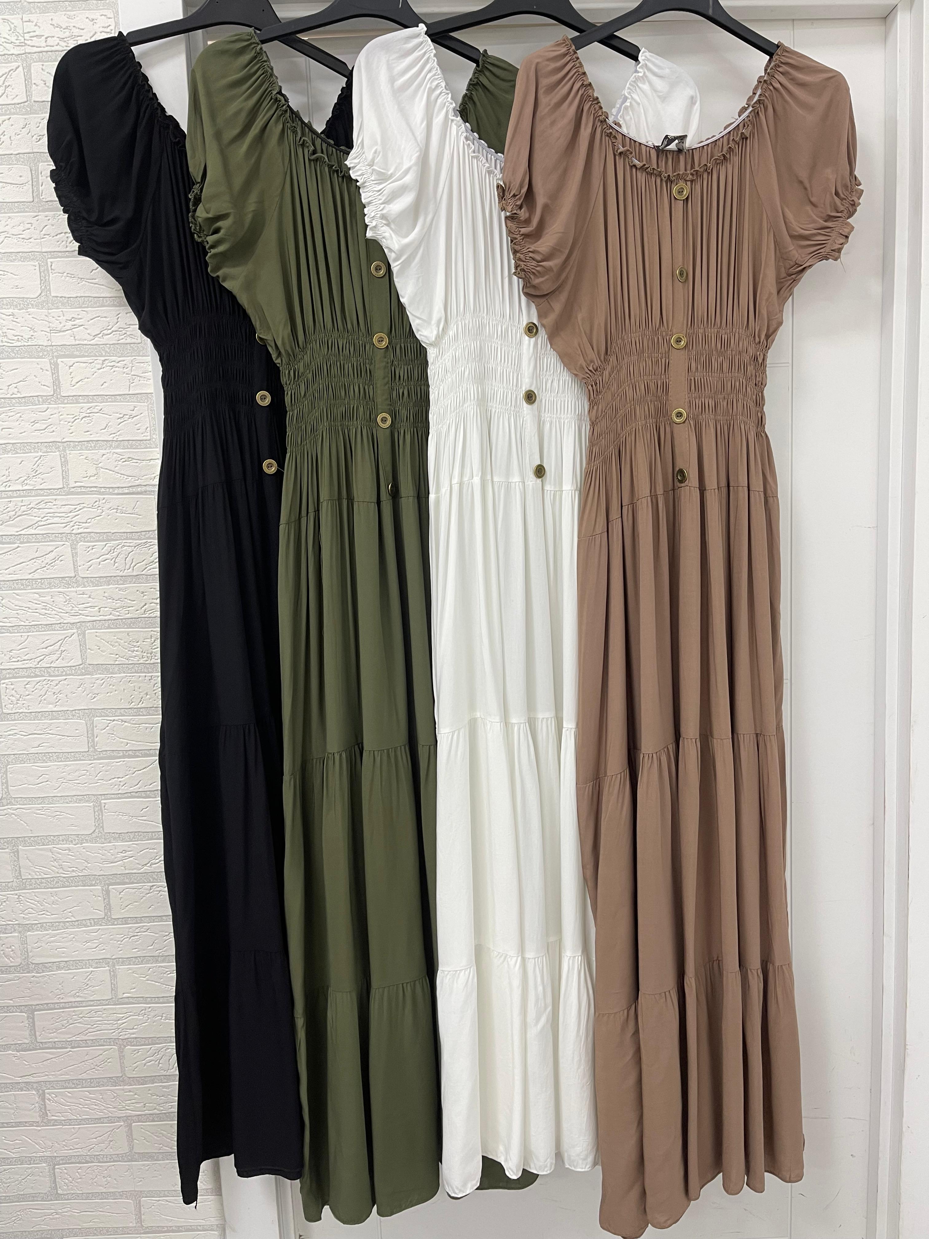 Fabricado en algodón, con nido de abeja en contorno de cintura. Manga corta y botones decorativos en la parte frontal.